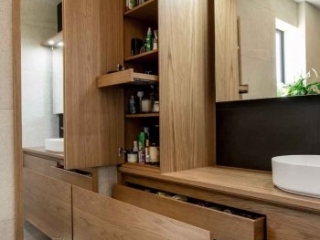 Cabinetry – surfacedesign bespoke cabinetry, finished in a heavy brushed art oak crown cut veneer, customised to our client’s personal needs.