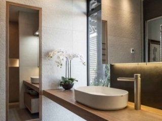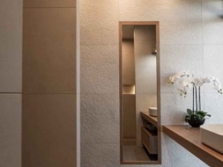 Our client came in with a small image of Buddha that was special to them and requested we develop their bathrooms around this. The colour palette and multiple textures in these bathrooms needed to be in alignment of feeling relaxed, natural and minimalist.